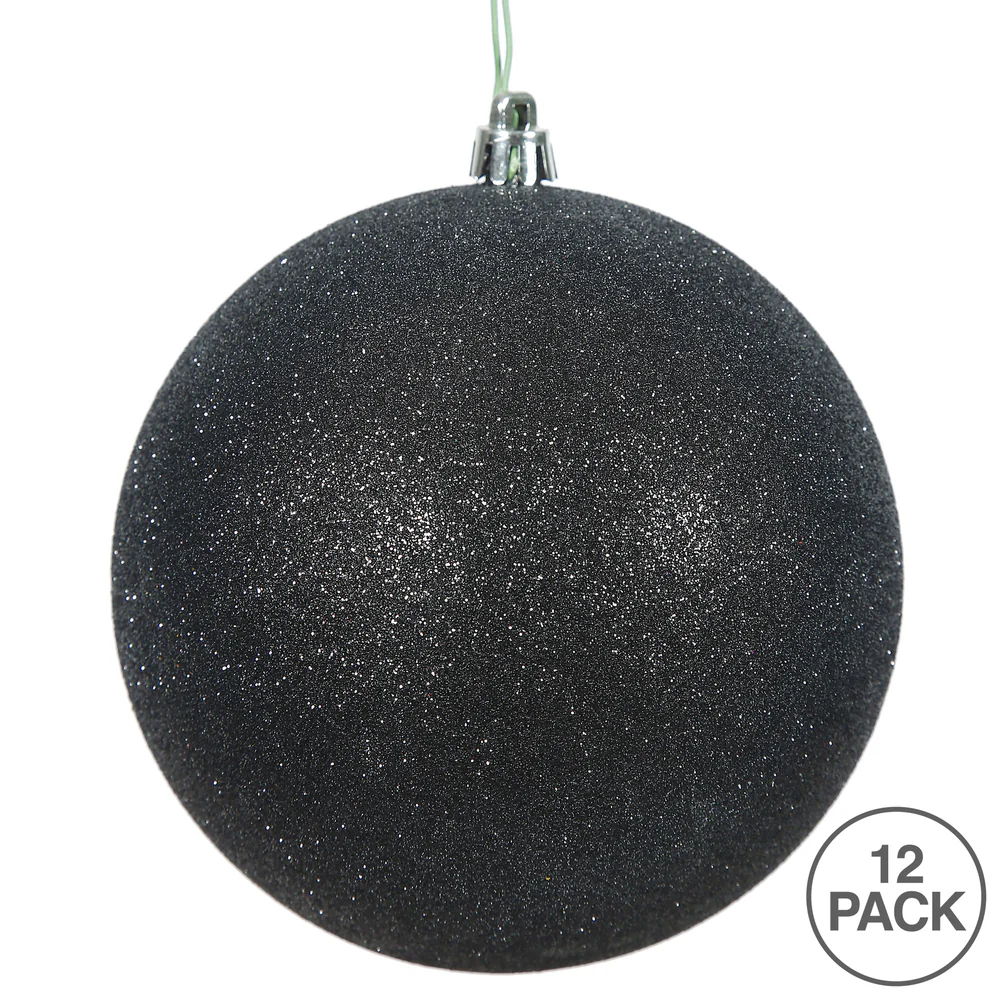 Vickerman 3" Black Glitter Ball Ornament 12 per Bag