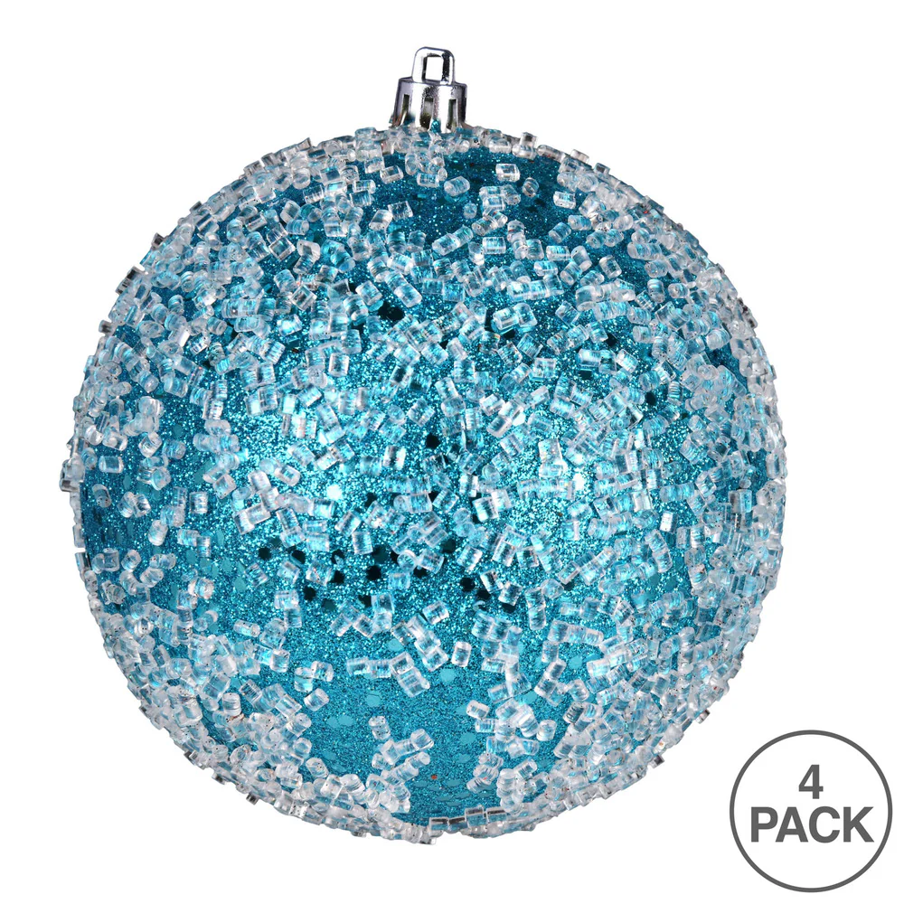 Vickerman 6" Turquoise Glitter Hail Ball Ornament 4 per Bag