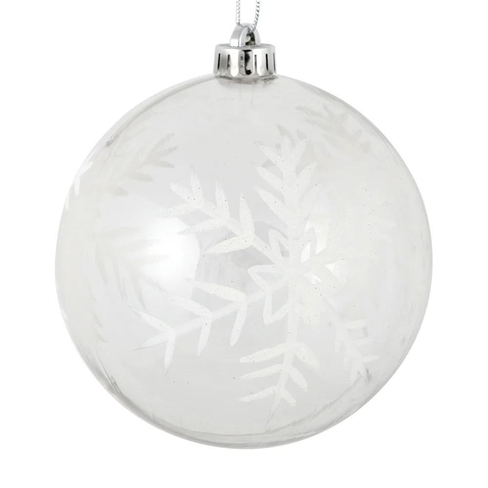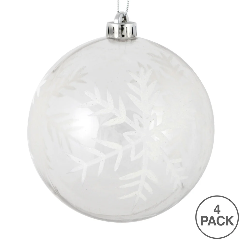 Vickerman 4" Clear Ball White Glitter Snowflake Ornament 4 per Box