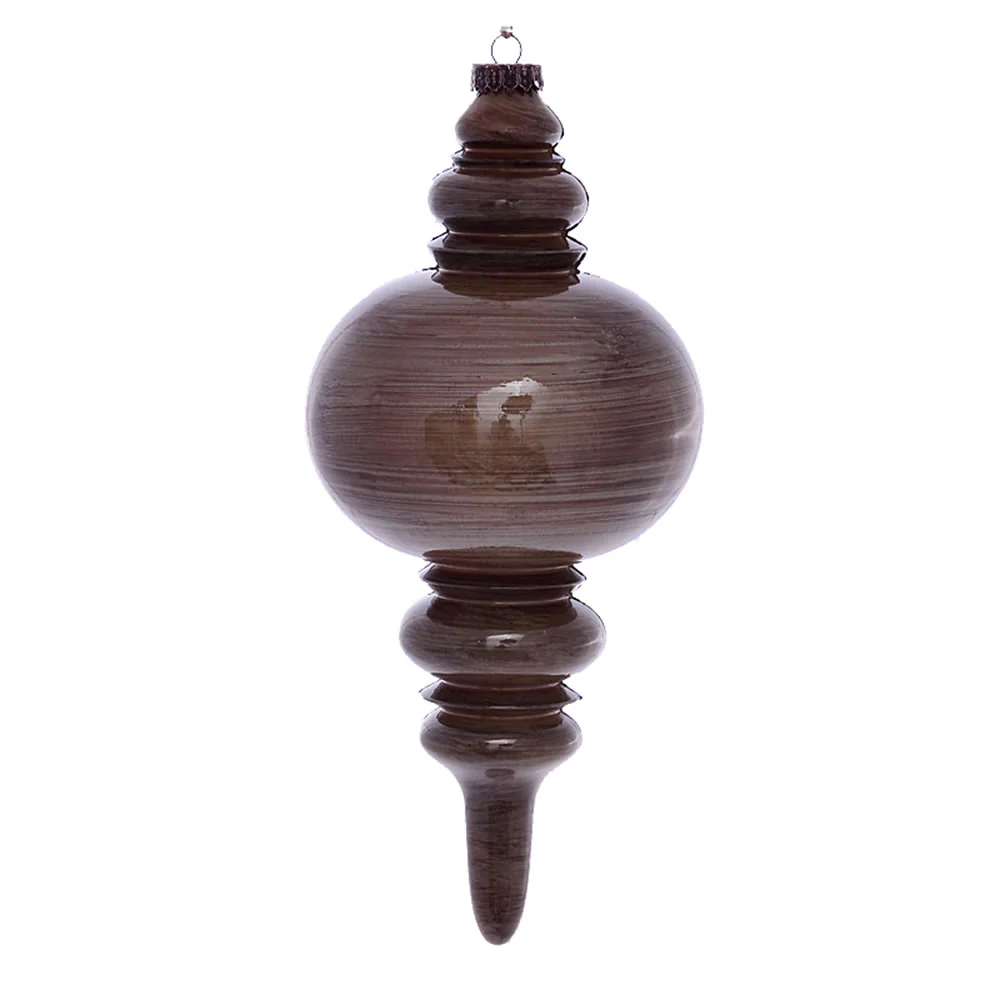 Vickerman 13" Pewter Wood Grain Finial Ornament. This ornament is the perfect addition to any holiday decorating project. It features a light wood grain pattern.