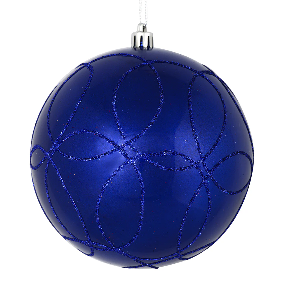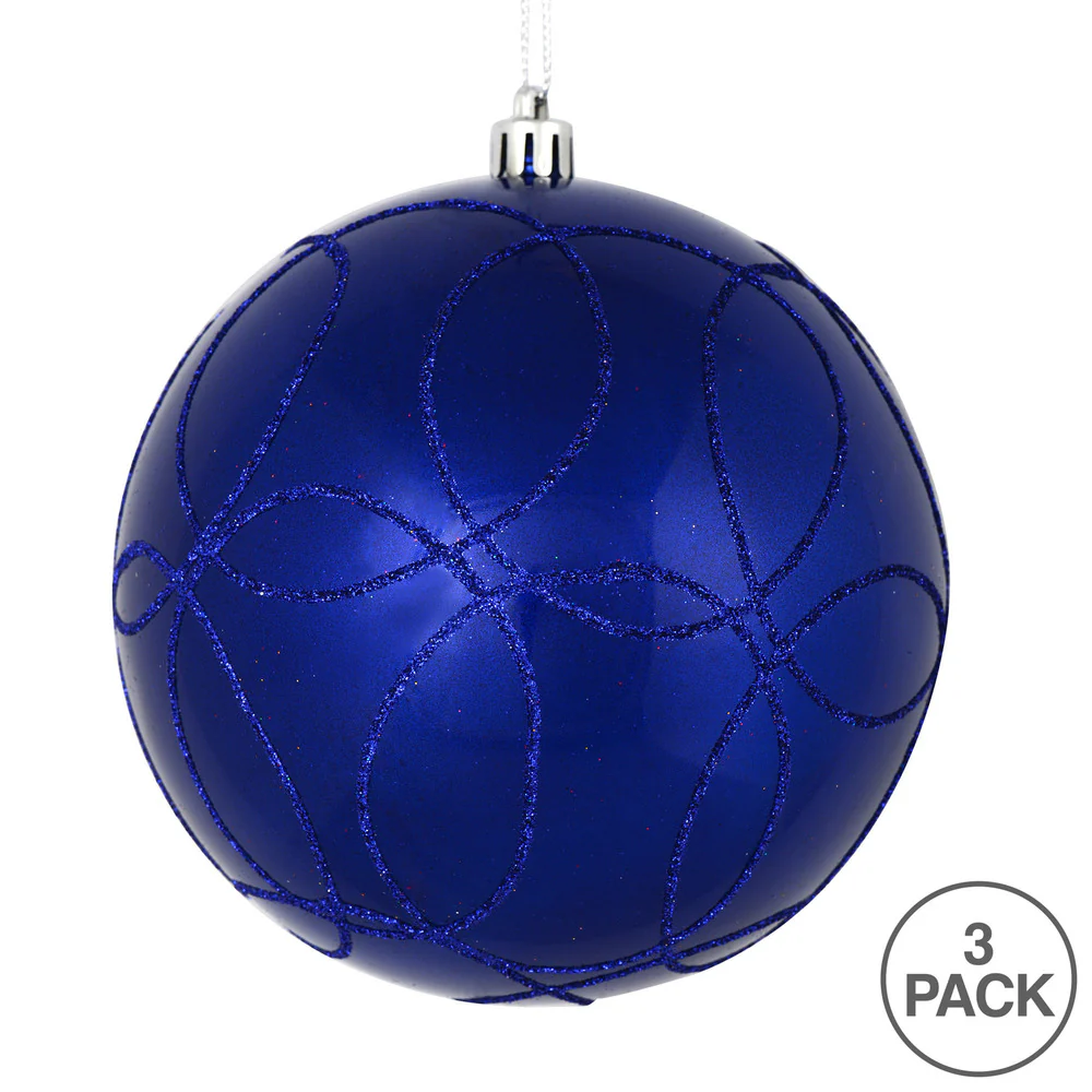 Vickerman 6" Cobalt Blue Candy Ornament with Circle Glitter Pattern 3 per Bag