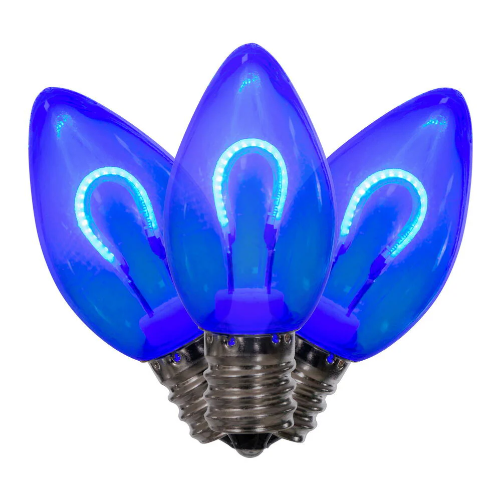 Vickerman C7 Transparent U-Shaped Filament Blue Bulb, E12 Base, .6 Watts, 25 Pcs Assorted/Bag. Colors included are Blue, Red, Green, Purple and Amber.