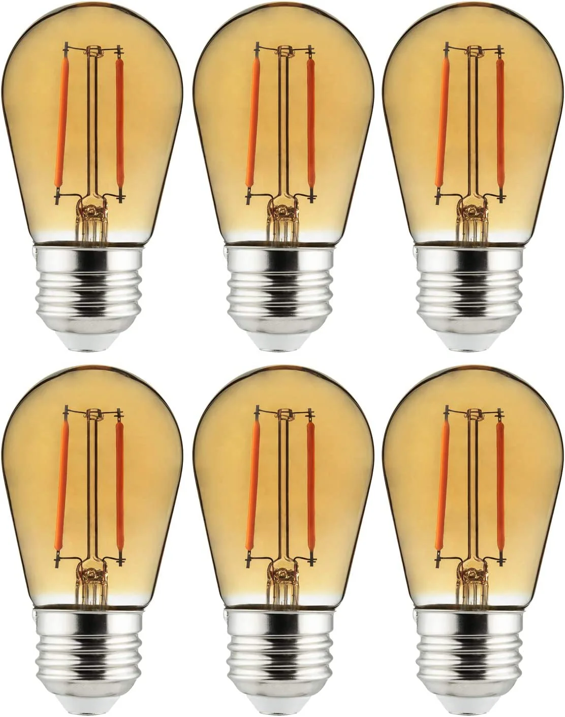 Vickerman S14 LED Yellow Ceramic Bulb 1.3 Watts, 130V, E26 Medium Nickel Base, 5 per pack.