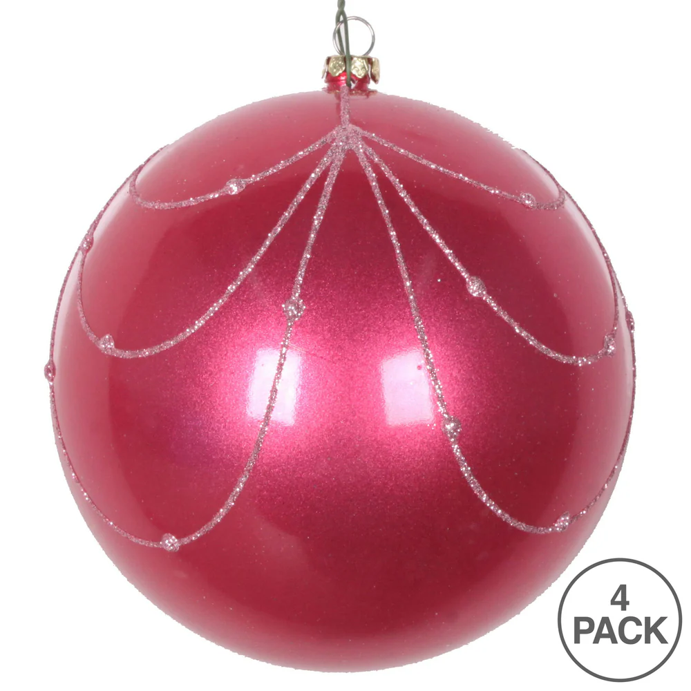 Vickerman 6" Hot Pink 4-Finish Ball Ornament 4 per box.
