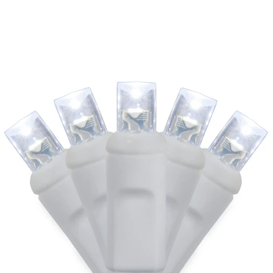 50 Light LED Conical (5MM) Light Set Pure White Bulbs on White Wire, Approx. 17'4" Long
