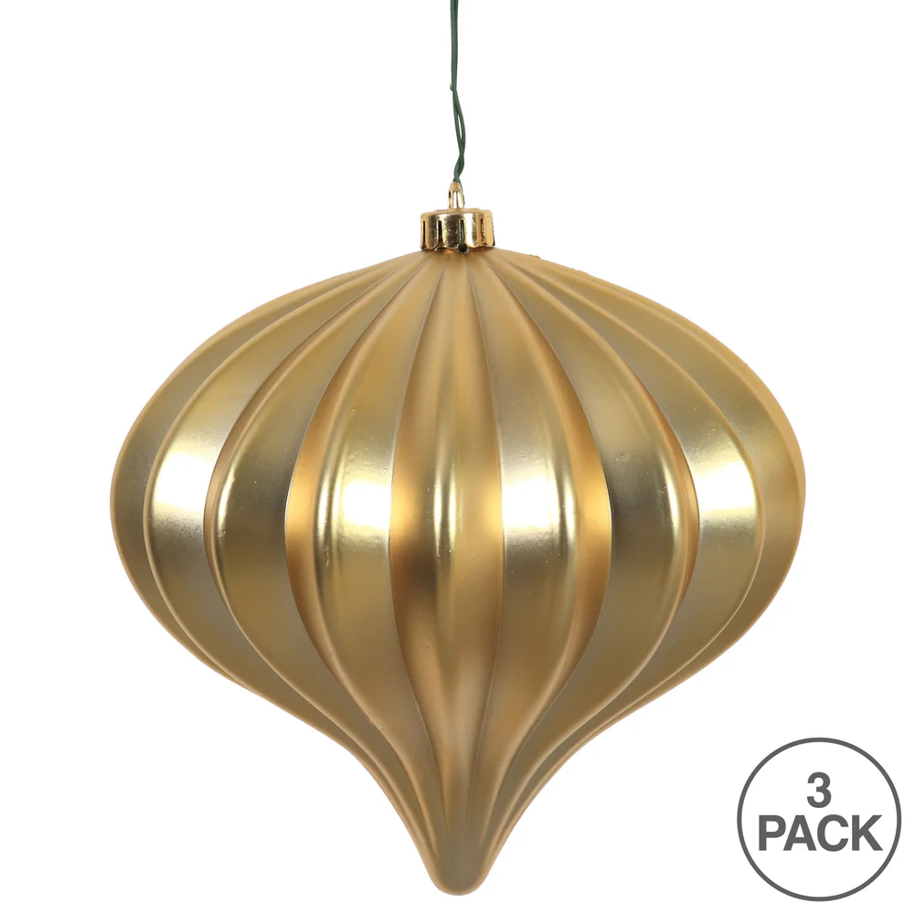 Vickerman 5.7" Gold Matte Onion Christmas Ornament UV treated Set of 3
