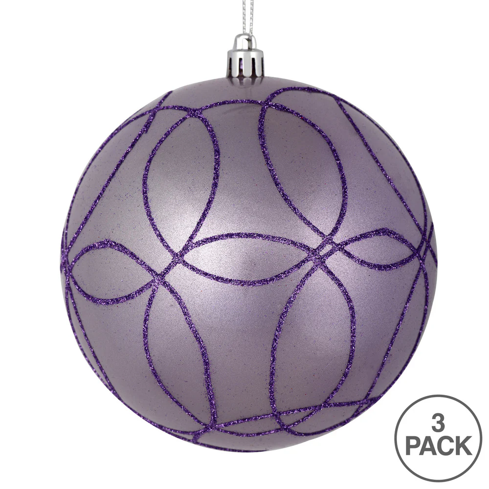 Vickerman 6" Lavender Candy Ornament with Circle Glitter Pattern 3 per Bag