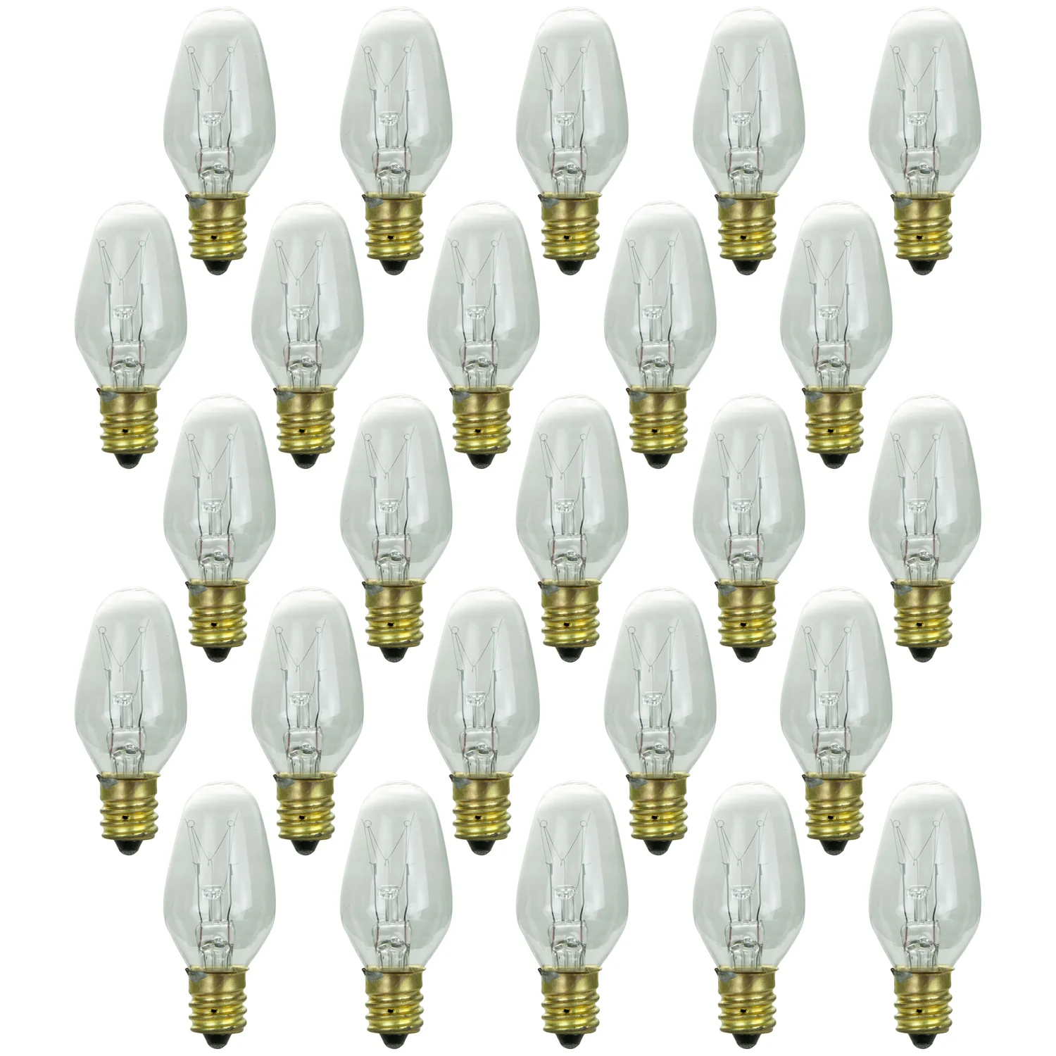 Sunlite 10 Watt C7 Night Light, Candelabra Base, Clear, 25 Pack
