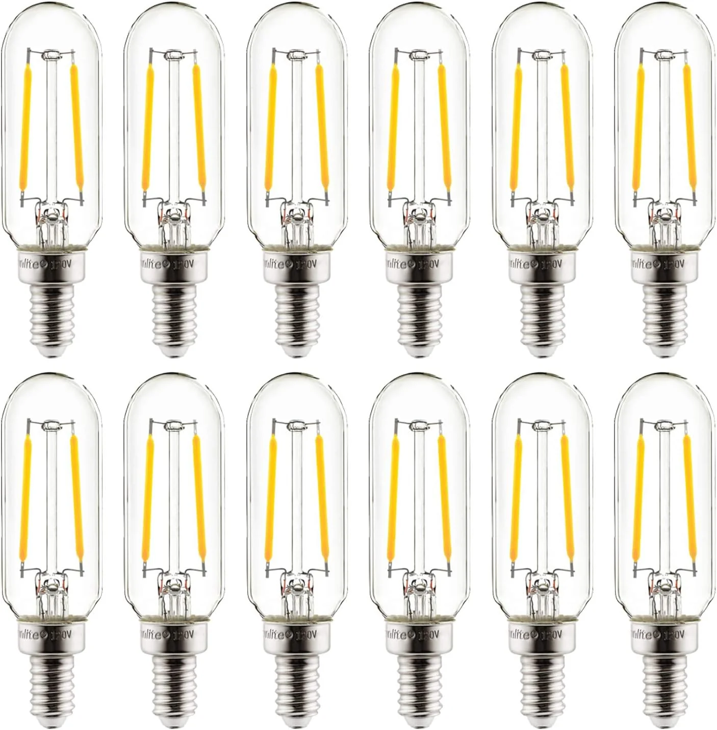 Sunlite 41343 LED Filament T8 Tubular Light Bulb, 2 Watts (25W Equivalent), 120 Lumens, Candelabra E12 Base, Dimmable, 85 mm, UL Listed, 2200K Amber, 12 Pack