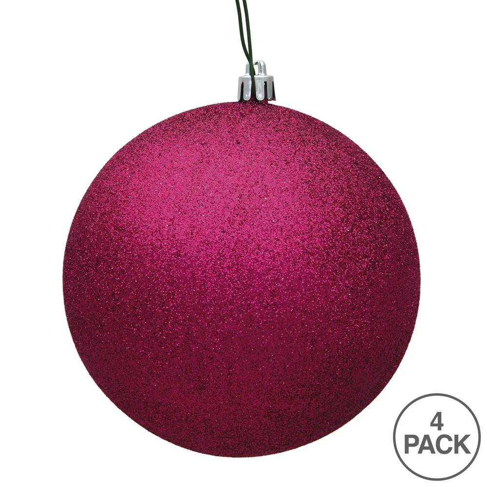 Vickerman 4.75" Fuchsia Glitter Ball Ornament 4 per Bag