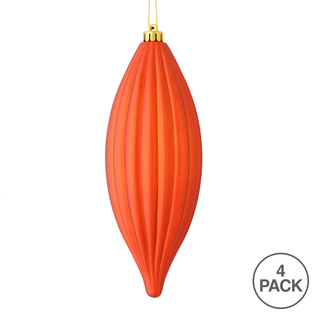 Vickerman 8" Burnished Orange Matte Line Finial Ornament Pack of 4