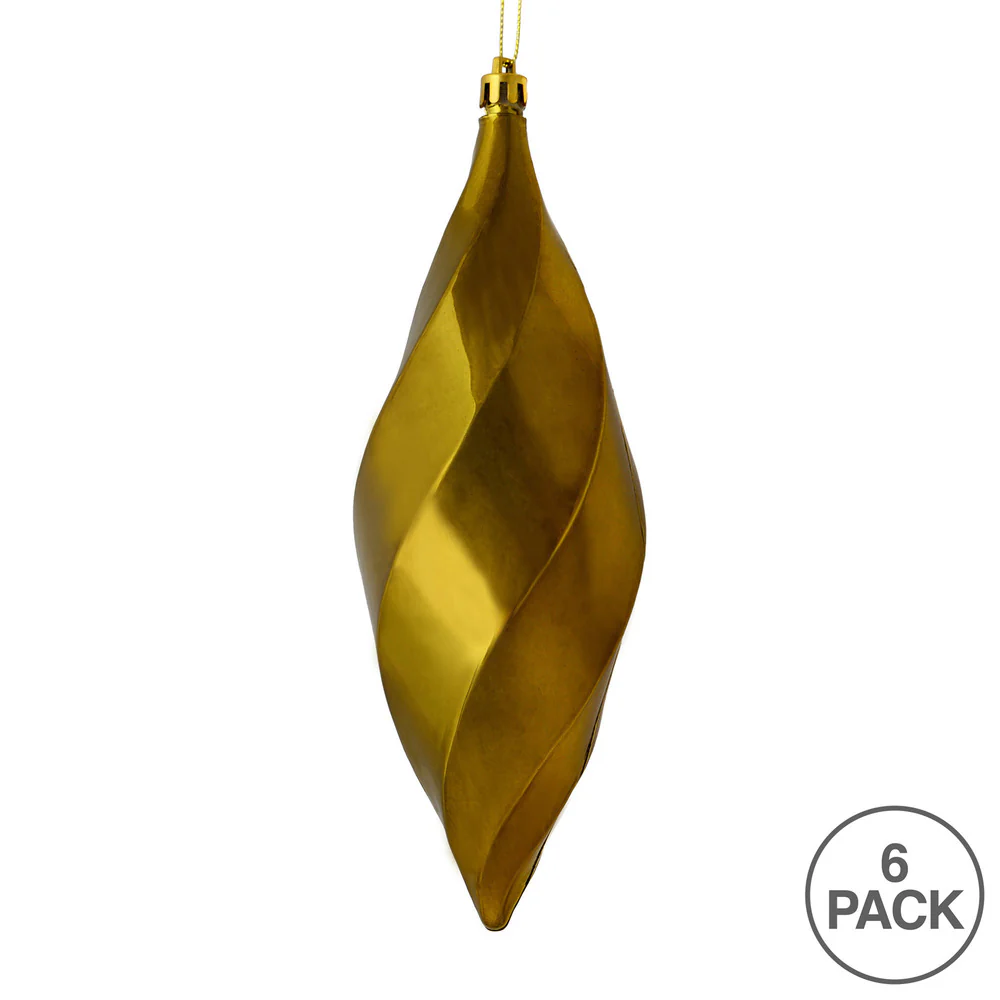 Vickerman 8" White Shiny Swirl Finial Ornament Pack of 6
