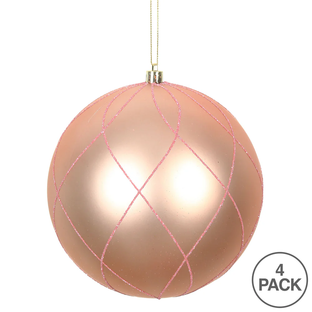 Vickerman 4" Rose Gold Matte and Glitter Swirl Ball Ornament 4 per Box