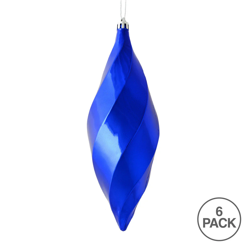Vickerman 8" Cobalt Blue Shiny Swirl Finial Ornament Pack of 6