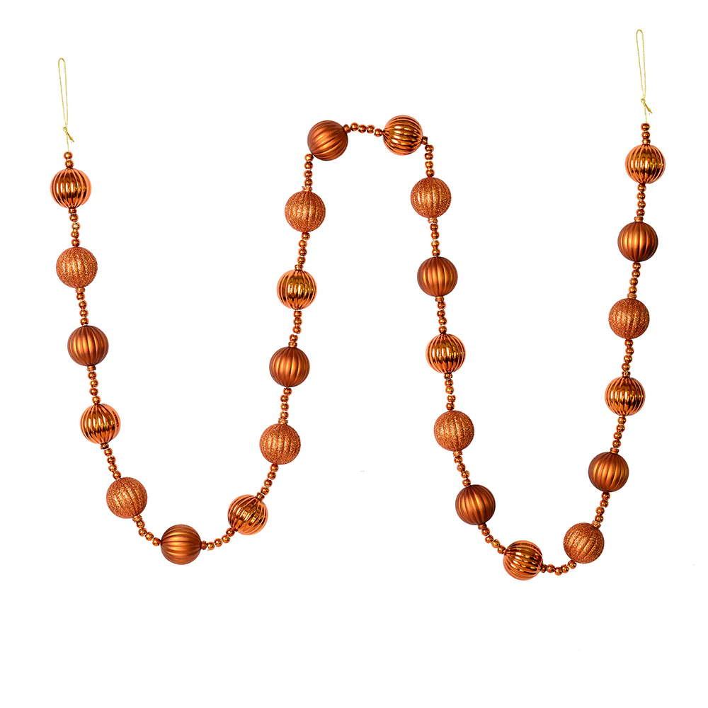 Vickerman 6' Copper Stripe Ball Ornament Christmas Garland