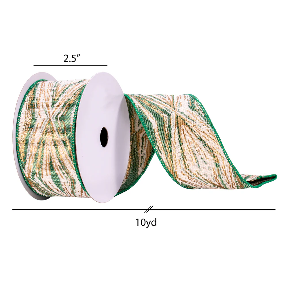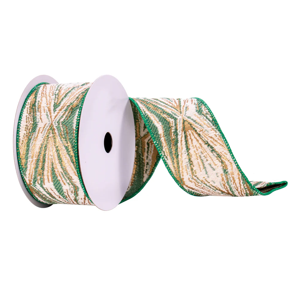 Vickerman 2.5" x 10 Yards Green/Cream/Champagne Diamonds Ribbon