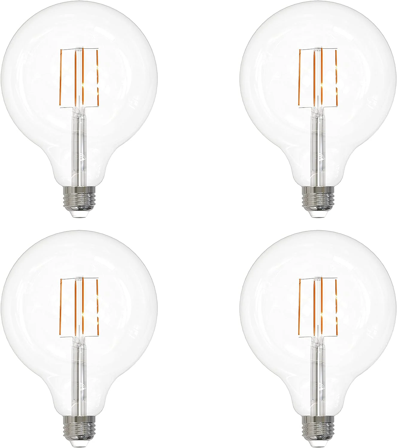 LED G40 Edison Globe Light Bulb, 8.5 Watts (100W Equivalent), Standard E26 Base, 800 Lumens, Dimmable, Decorative Clear Glass, Antique Long Filament, 90 CRI, 2700K Warm White, 4 Count