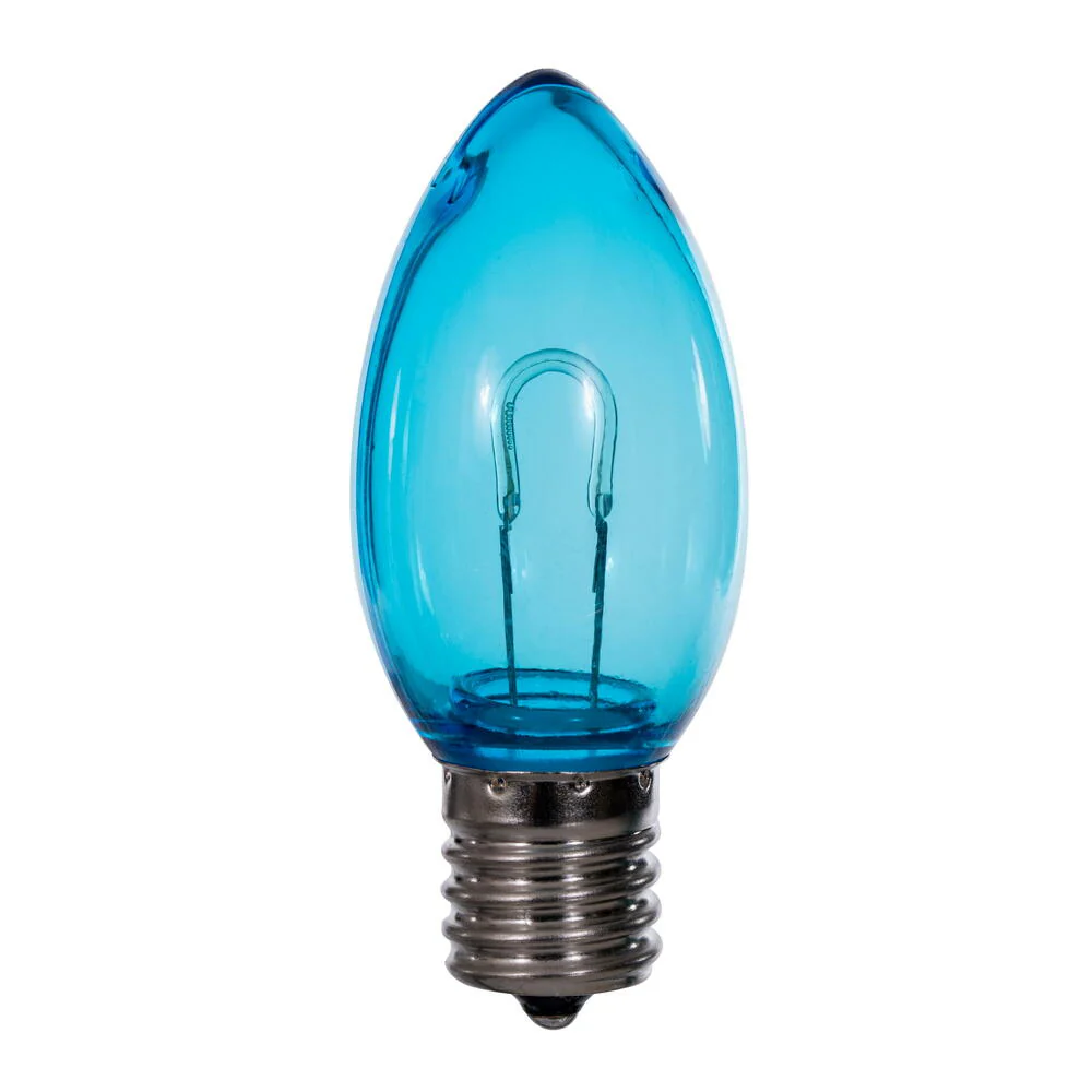 Vickerman C9 Transparent U-Shaped Filament Blue Bulb, E17 Base, .6 Watts, 25 Pcs Assorted/Bag. Colors included are Blue, Red, Green, Purple and Amber.