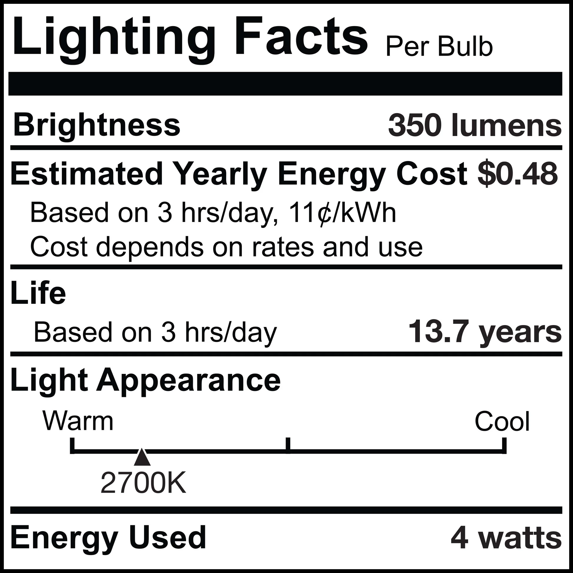 Bulbrite Spunlite Pack of (4) 4 Watt Dimmable C11 LED Filament Light Bulb with Satin Glass Finish and Candelabra (E12) Base - 2700K (Warm White Light), 350 Lumens