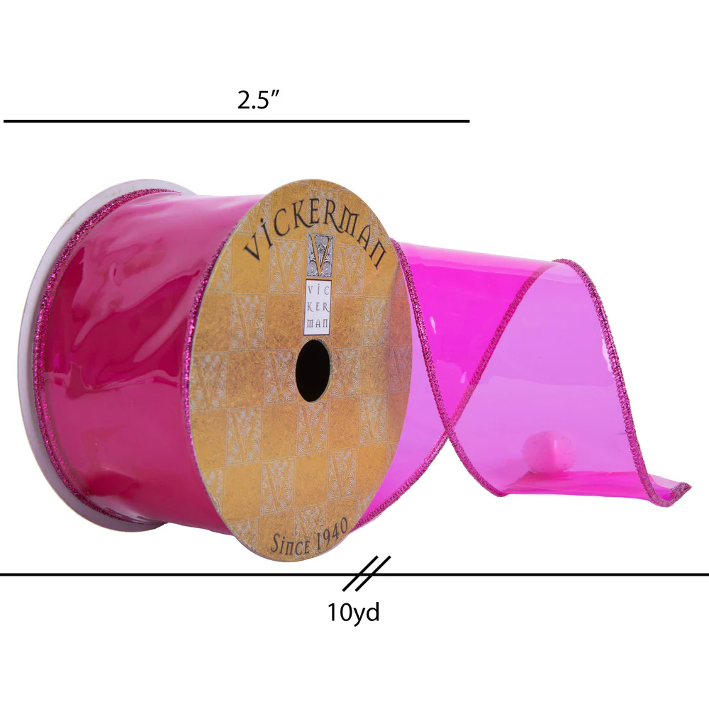Vickerman 2.5" x 10 Yards Pink Transparent PVC Christmas Ribbon