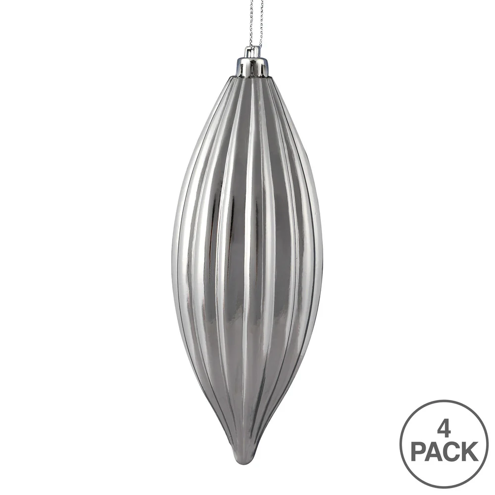 Vickerman 8" Silver Shiny Line Finial Ornament Pack of 4