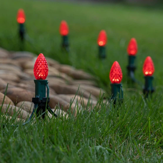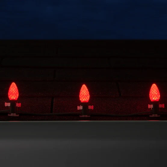 25 Light LED C7 Light Set Red Bulbs on Green Wire, Approx. 16'6" Long