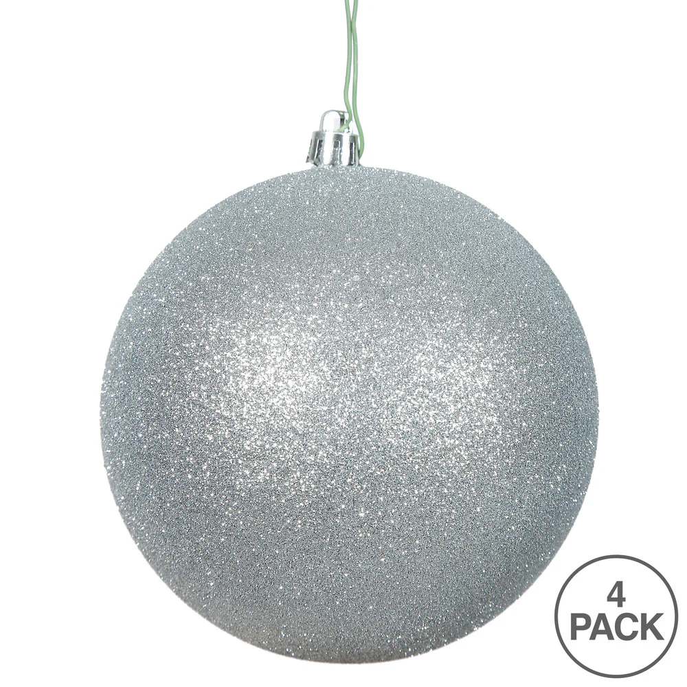 Vickerman 4.75" Silver Glitter Ball Ornament 4 per Bag