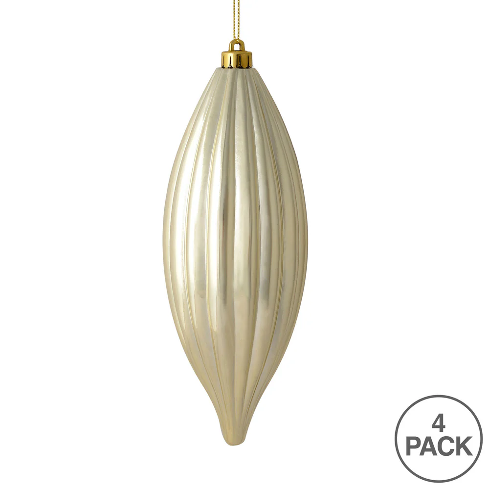 Vickerman 8" Champagne Shiny Line Finial Ornament Pack of 4