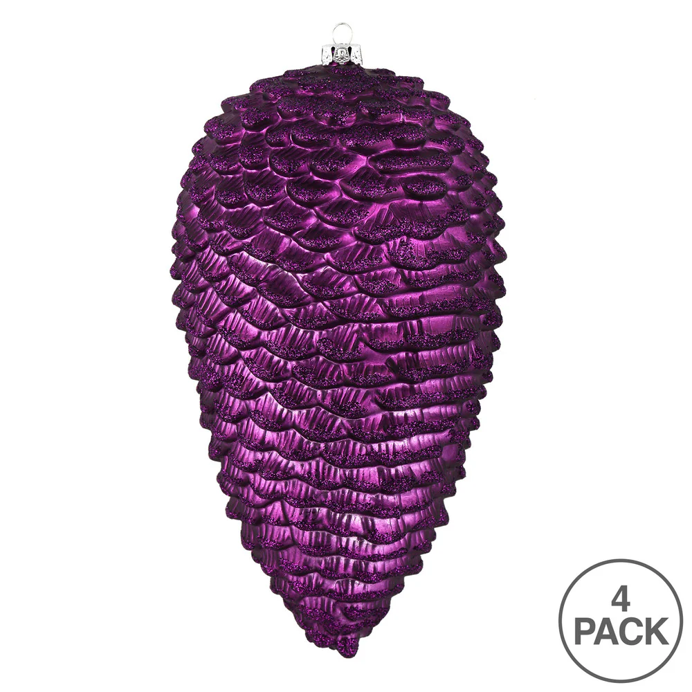 Vickerman 7" Plum Matte Glitter Pinecone Christmas Ornament 4 per pack