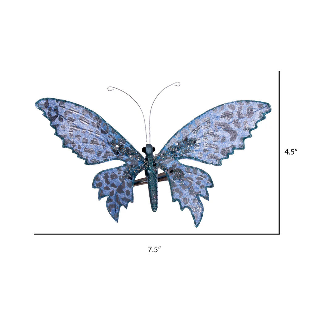 Vickerman 7.5" Blue Glitter Butterfly on Clip 4 pieces per bag