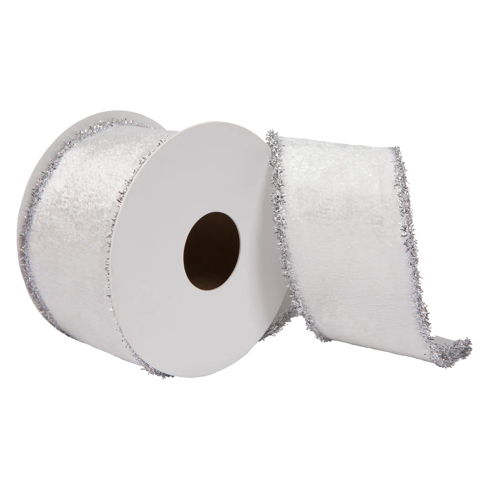 Vickerman 2.5" x 5 Yards Ivory Viscose Velvet Double Fused Ribbon.
