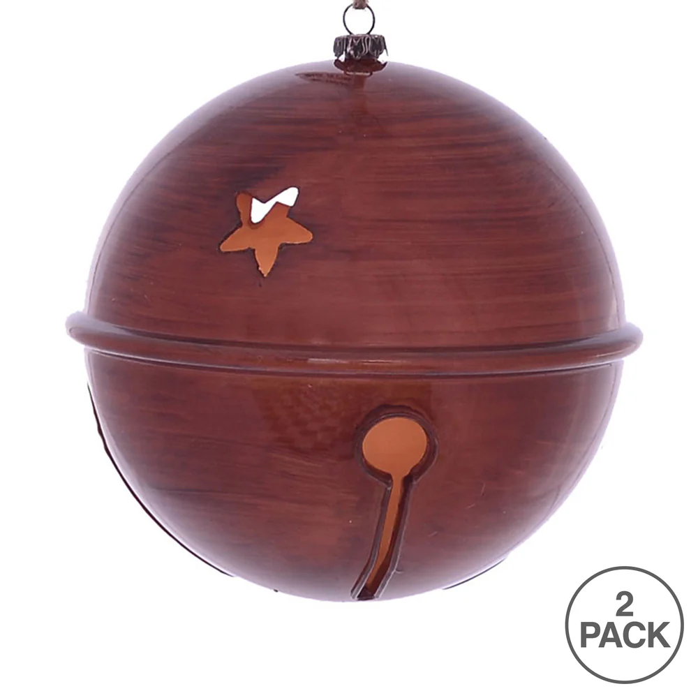 Vickerman 6" Copper Wood Grain Bell Christmas Ornament Pack of 2