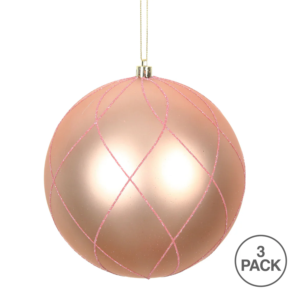 Vickerman 6" Rose Gold Matte and Glitter Swirl Ball Ornament 3 per Box