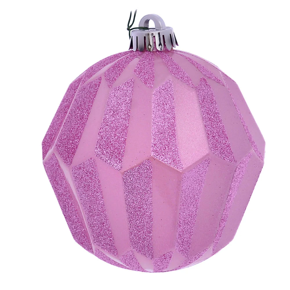 Vickerman 5" Pink Glitter Faceted Ball Ornament 3 per Bag
