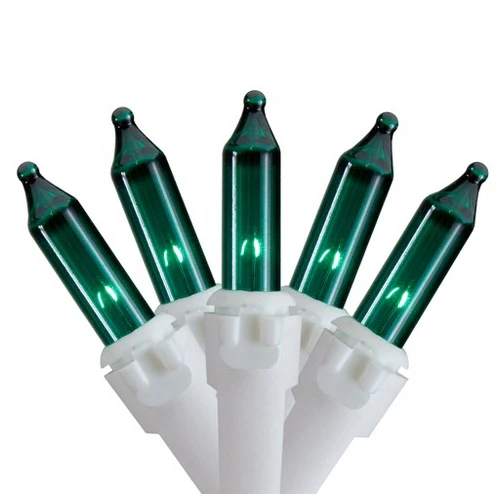 Transparent Green Christmas Tree Mini Lights, 50 Lights, T1 3/4 Shaped, 16 Foot, White Wire, Steady Burning and Flashing