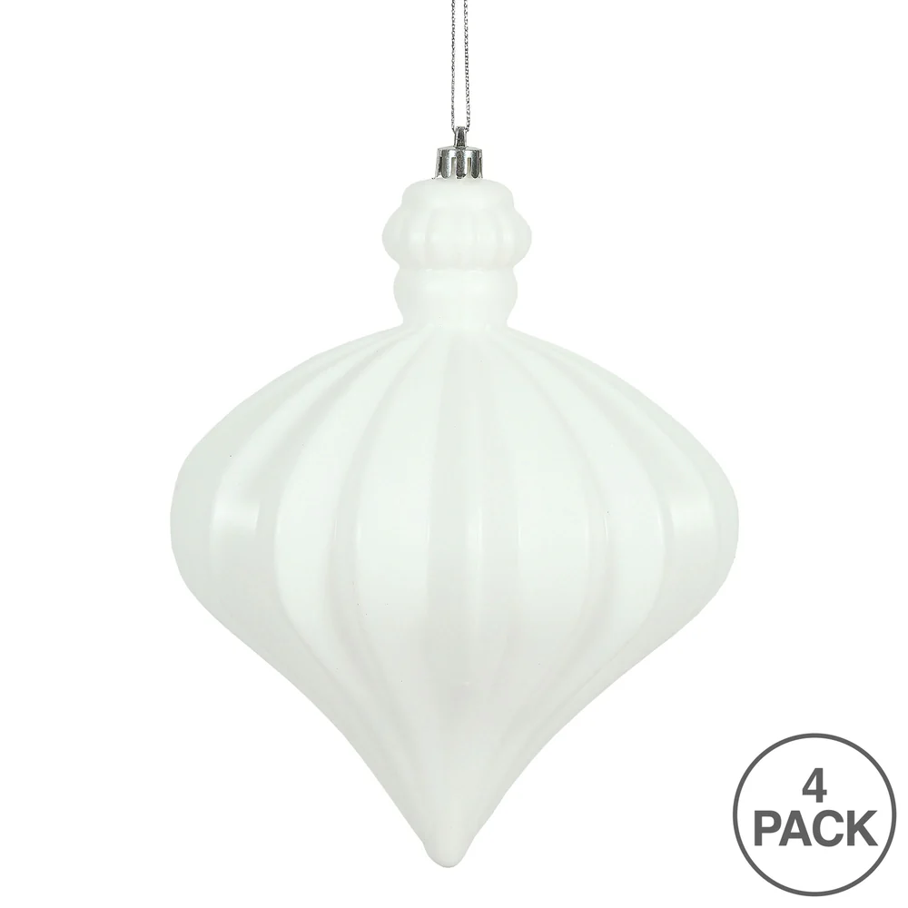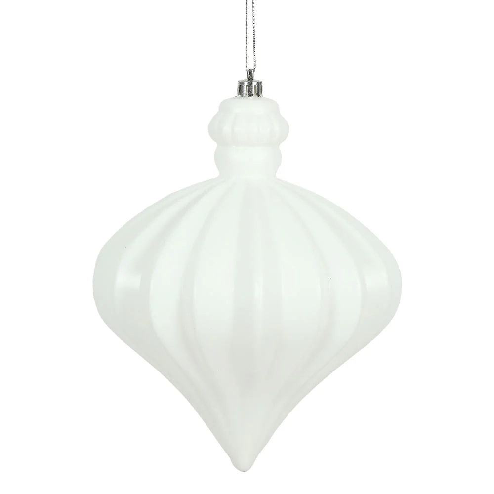 Vickerman 6" White Matte Onion Drop Christmas Ornament 4 per Bag