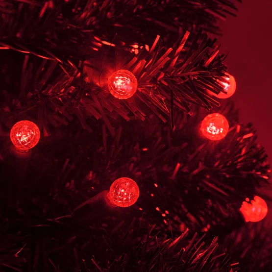 50 Light LED Razzberry (G12) Light Set Red Bulbs on Green Wire, Approx. 17'8" Long