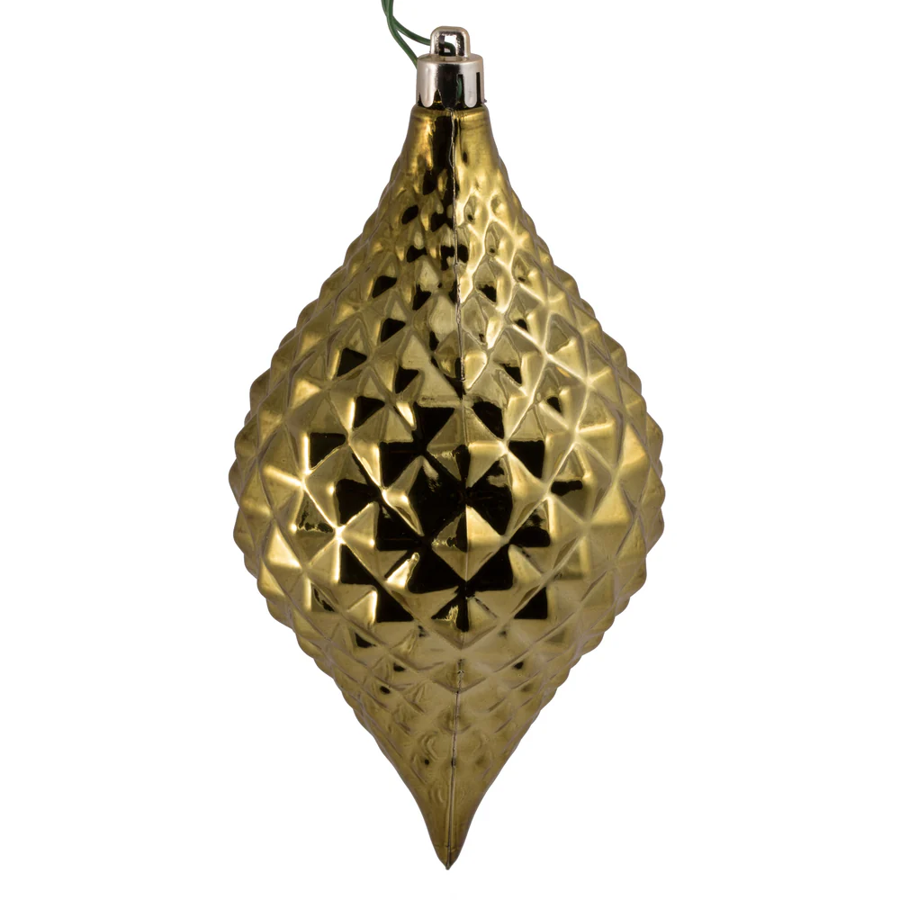 Vickerman 6" x 3" Olive Shiny Diamond Drop Ornament with drilled and wired caps. Comes 4 per Bag.