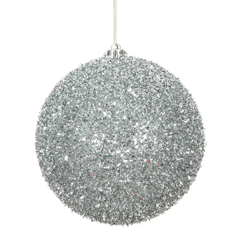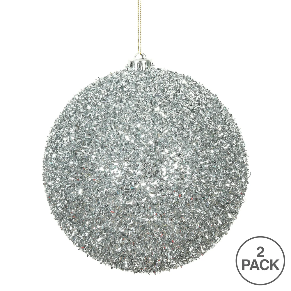 Vickerman 6" Silver Tinsel Ball Ornament 2 per Bag