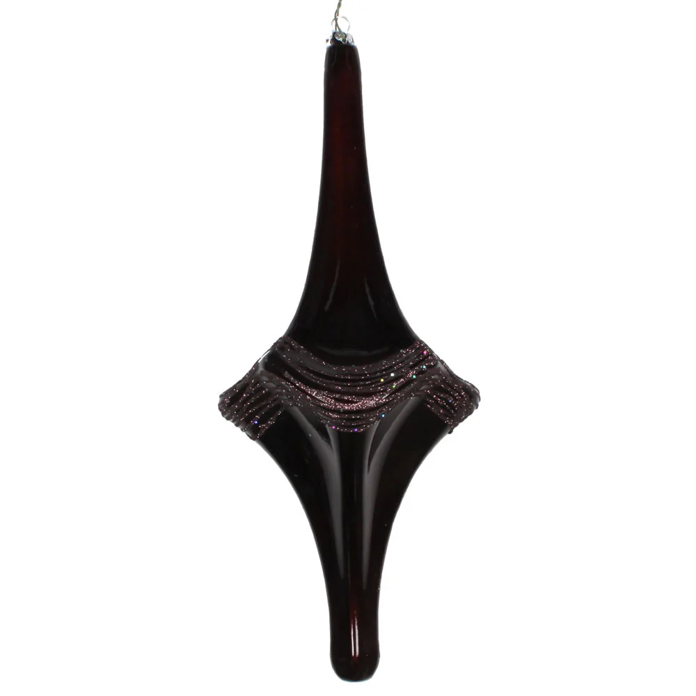 Vickerman 14.6" Plum Shiny Spiral Icicle Ornament with drilled and wired caps. Comes 2 per Box.