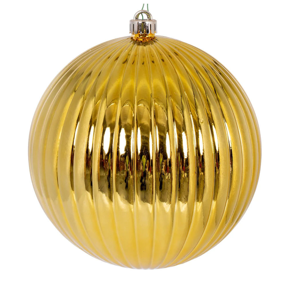 Vickerman 8" Gold Shiny Lined Ball Ornament 1 per Bag.
