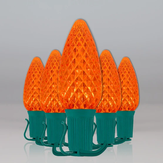 25-Light LED C9 Light Set; Orange Bulbs on Green Wire, Approx. 16'6" Long