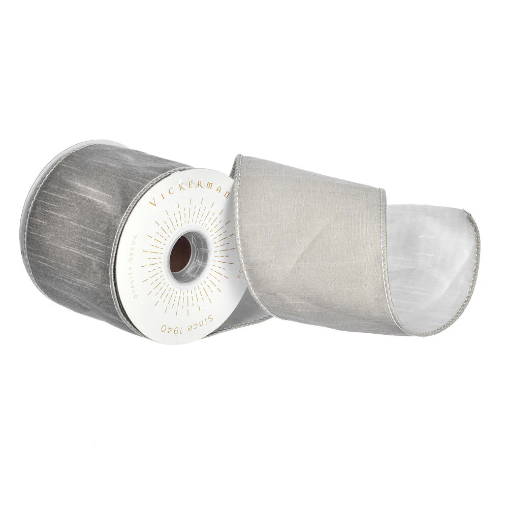Vickerman 4 x 10 Yards Gray Dupion Double Fused Dupion Ribbon