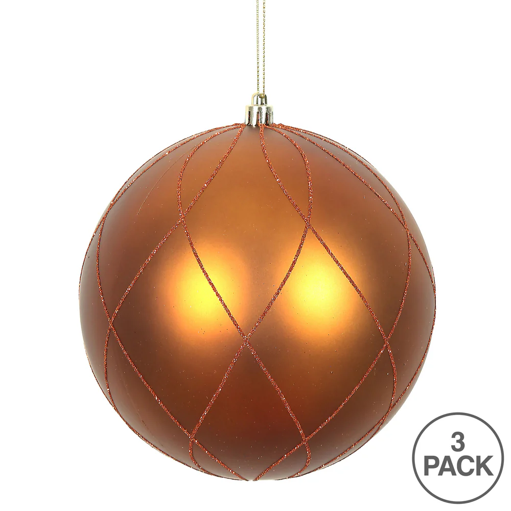 Vickerman 6" Copper Matte and Glitter Swirl Ball Ornament 3 per Box