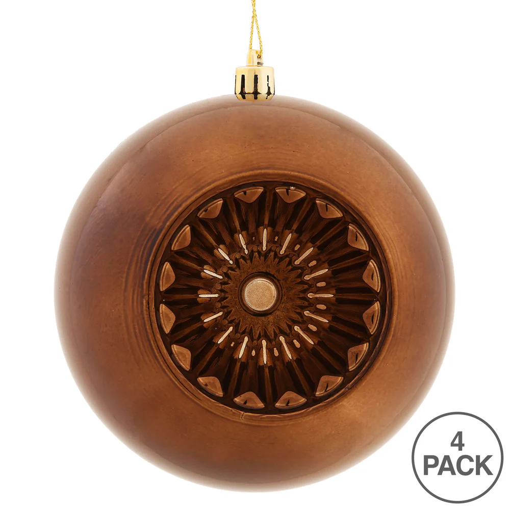 Vickerman 4.75" Chocolate Shiny Star Brite Ball Ornament 4 per Bag