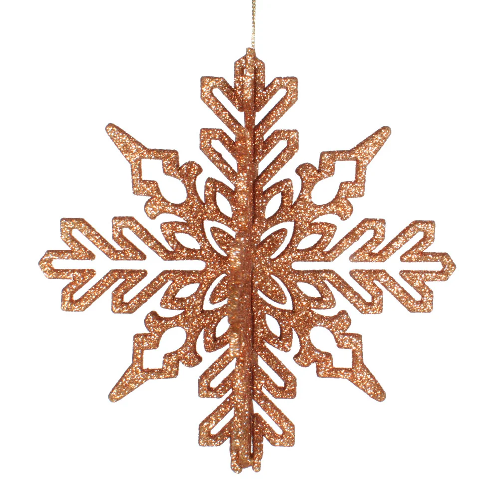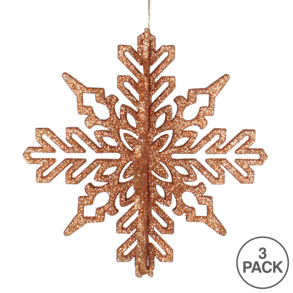 Vickerman 6" Rose Gold 3D Glitter Snowflake Christmas Ornament Set of 3