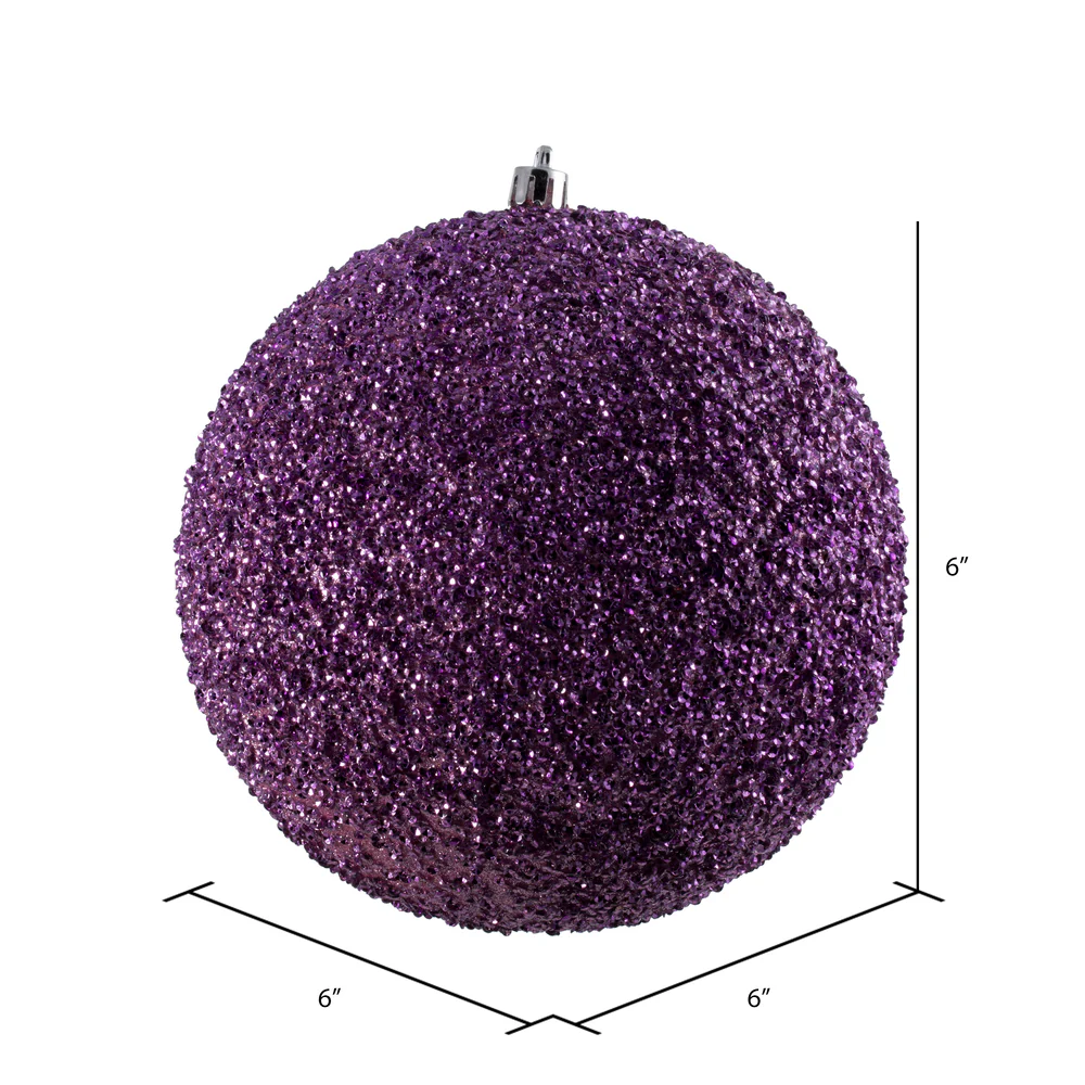 Vickerman 6" Lilac Glitter Ornament. This ornament features a matte embossed top with glitter accents and a shiny bottom. The variety of finishes on this ornament creates elegance that will complement any holiday decorating project. Includes 6 piec