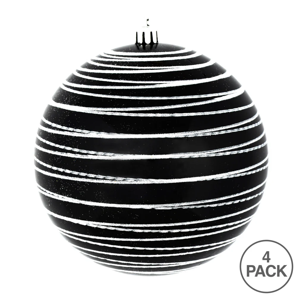 Vickerman 4" Black Candy Finish Ball Ornament with Glitter Lines 4 per Bag