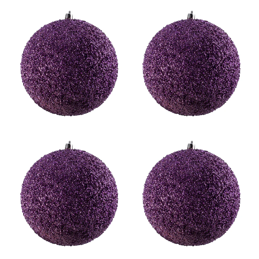 Vickerman 8" Plum 4-Finish Ball Ornament Assortment 4 per Bag