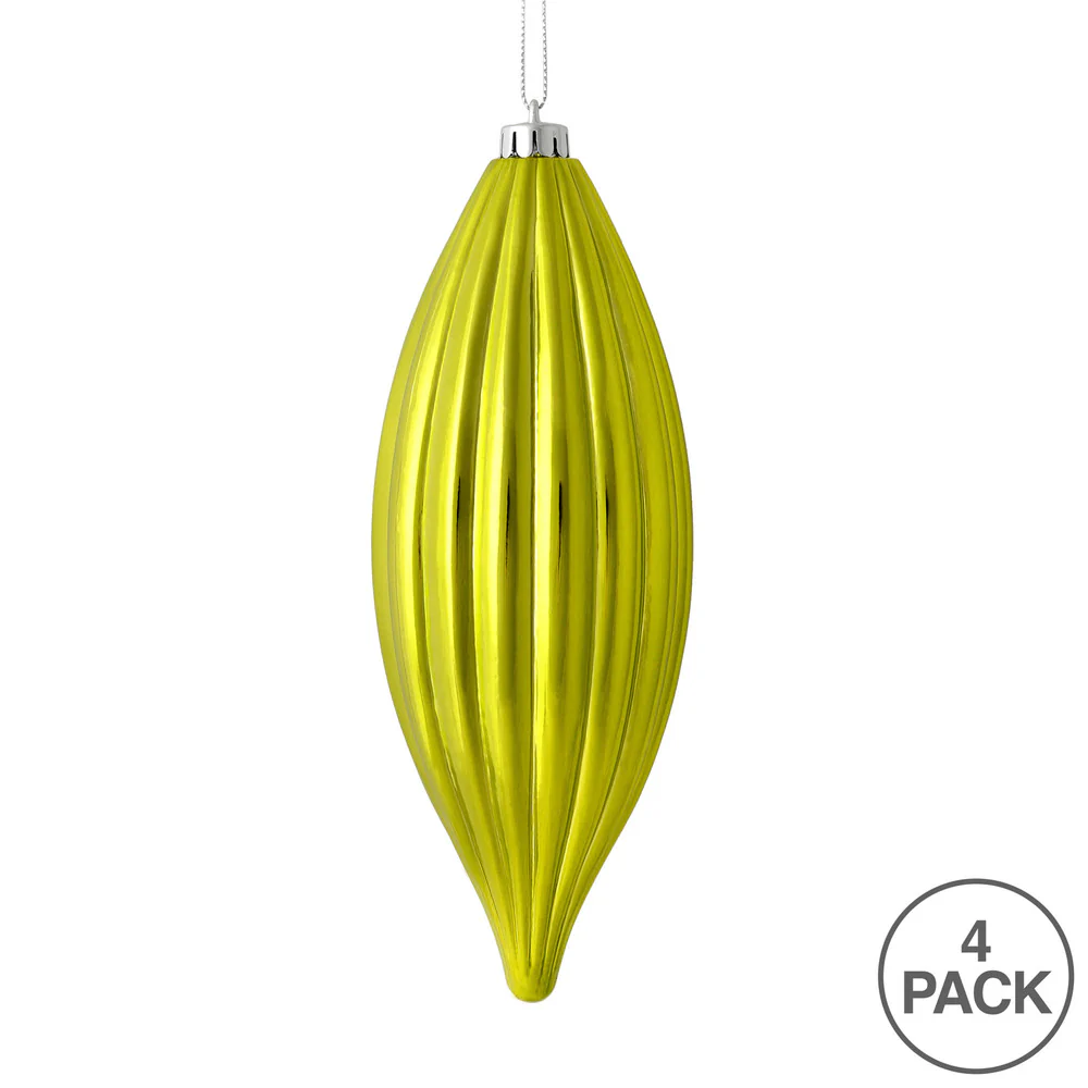Vickerman 8" Lime Shiny Line Finial Ornament Pack of 4